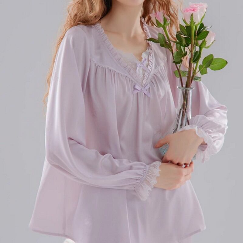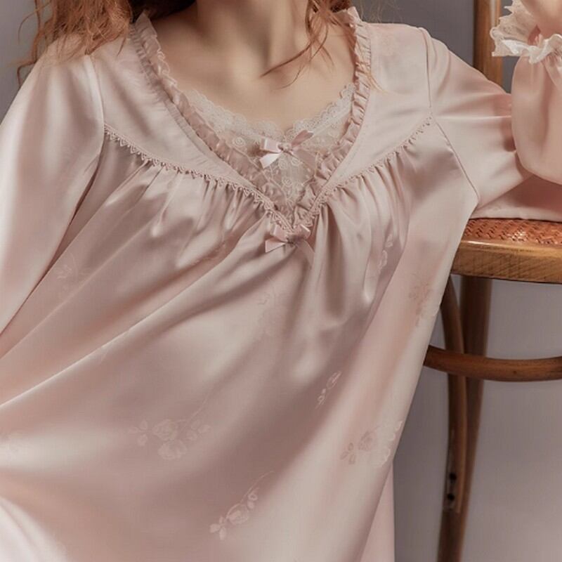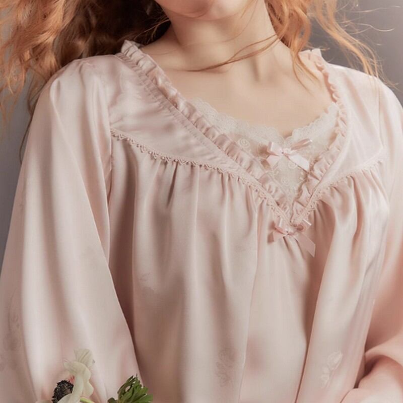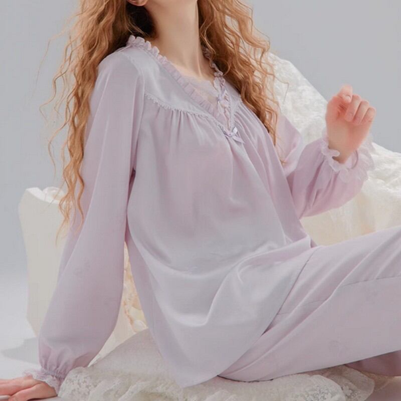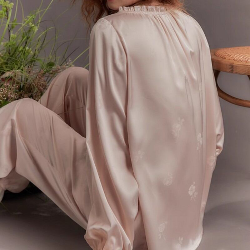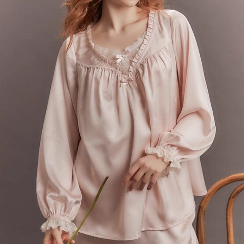 ジャカード Vネックフリルパジャマ(長袖) N00003